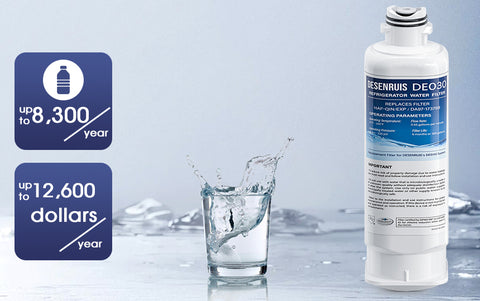 One water filter equals 1,500 plastic water bottles you don’t need to buy — when you keep your family refreshed and hydrated with your refrigerator water dispenser.